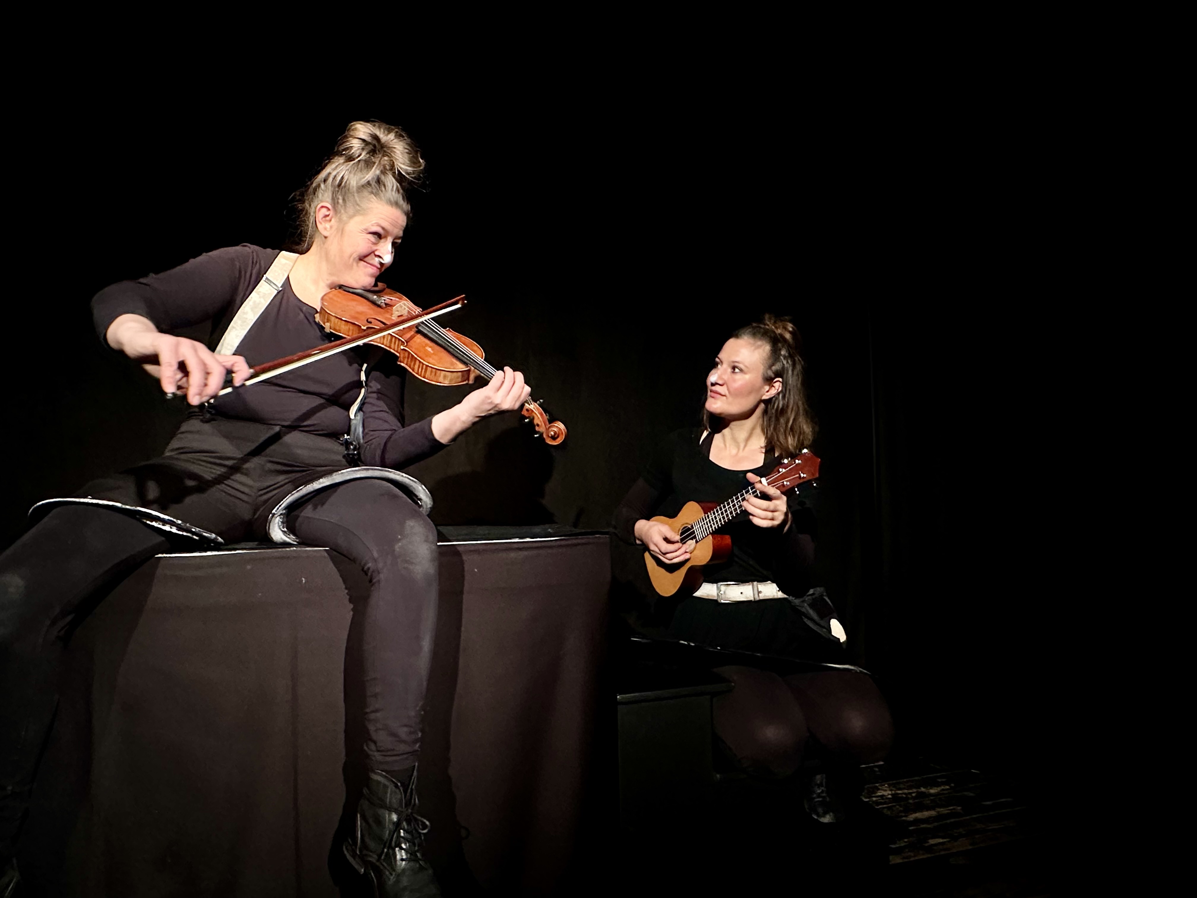 Mit Musik, Poesie und ganz wenig Worten wecken die zwei Spielerinnen sieben kleine, schlafende Wunder.
