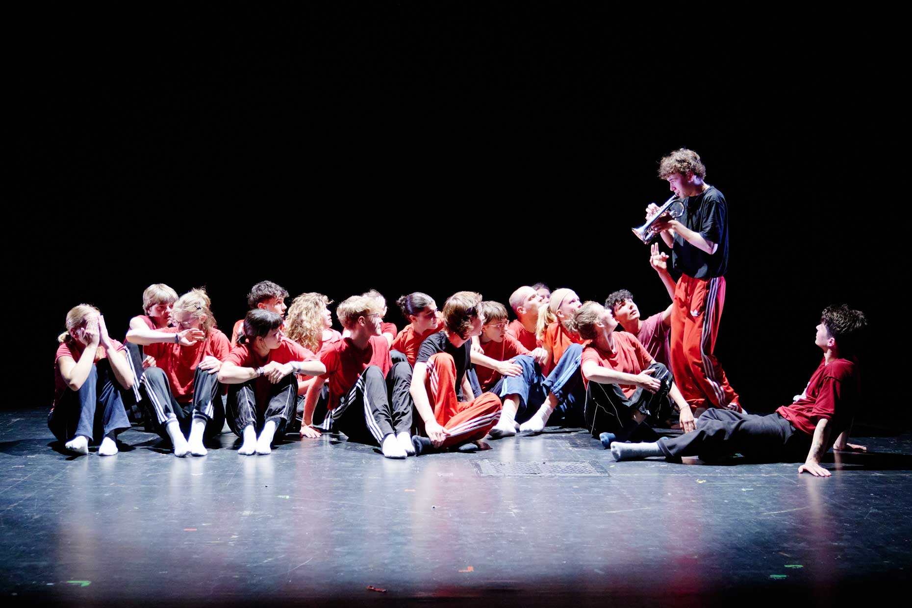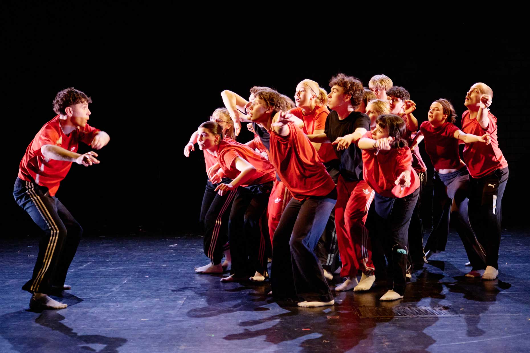 Geschwisterliebe, gibt’s die noch? Wie fühlen wir uns verbunden? Sind wir sanfte Zwillinge oder wütende, tobende Geschwister? Kämpfen wir tanzend miteinander oder eher vereinzelt? Und was ist, wenn ich damit einfach nichts zu tun haben will? In unterschiedlichen Startingpoints erzählen wir von Einsamkeiten und Gemeinsamkeiten, von Zugehörigkeit und Wir-Gefühlen. Gegenwartstexte und eigene Texturen sind Aushandlungsräume. Mit eigener Musik in Stimm- und Körpertext zeigen 20 junge Performer:innen ihre Auseinandersetzung mit dem großen Thema Sister und Brotherhood. Mutiges Verbundensein zeigt sich in unterschiedlichen performativen Situationen mit Livemusik und eigenen Choreografien.