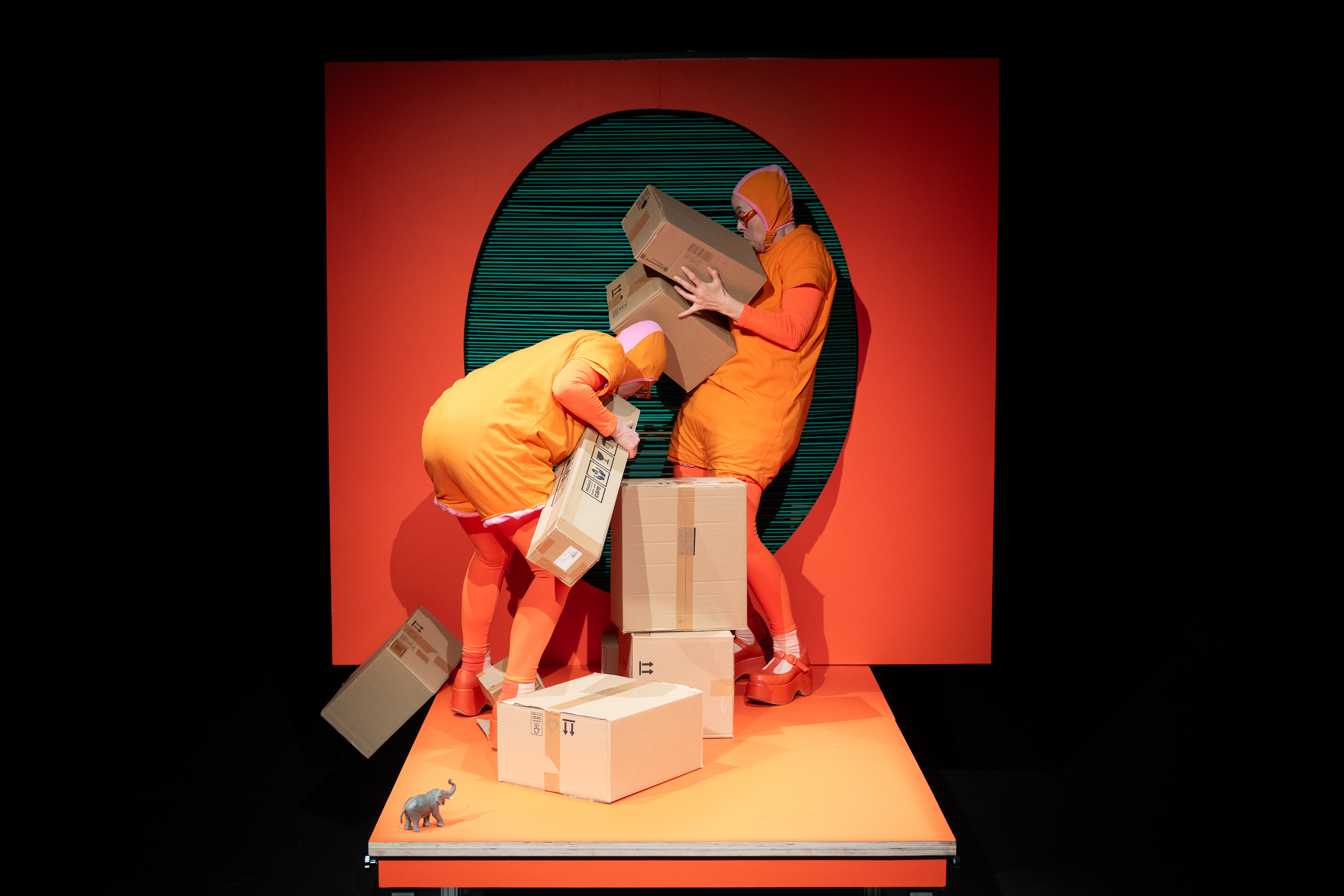 Was machen zwei wunderliche Typen auf einem kleinen Fleck irgendwo im Nirgendwo? Sie erspielen sich die Welt. Dort lebt auch ein Elefant - ein kleiner Spielzeug-Elefant. Mit ihm werden sie zu Dickhäutern mit großen Ohren und langen Rüsseln, die durch die weite Ebene schreiten und im Zirkus trompeten. Aber da gibt es noch mehr: Ein Paket! Zwei, drei, sogar ganz viele!! Jetzt wird getrommelt und gebaut, gestapelt und getanzt. Und der Elefant? Ist auf einmal weg! Oh Schreck!
